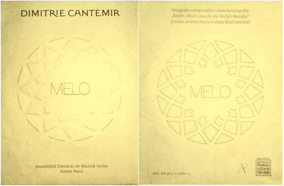 At the end of this initiatic journey, we decided to pay a tribute to his important cultural work resulting a double CD - CANTEMIR MELO, which contains recordings of all his compositions known for certain were composed by him. Until now, the researchers like Walter Zev Feldman, Owen Wright or Eugenia Popescu-Judetz have certainly stated that the 18 muzical creations from Kitab-ı İlmi’l-musiki ala Vechi’lHurafat (The Book of the Science of Music through Letters) are written by prince Cantemir.